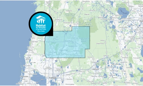 Where does Habitat for Humanity of East and Central Pasco County build homes?
