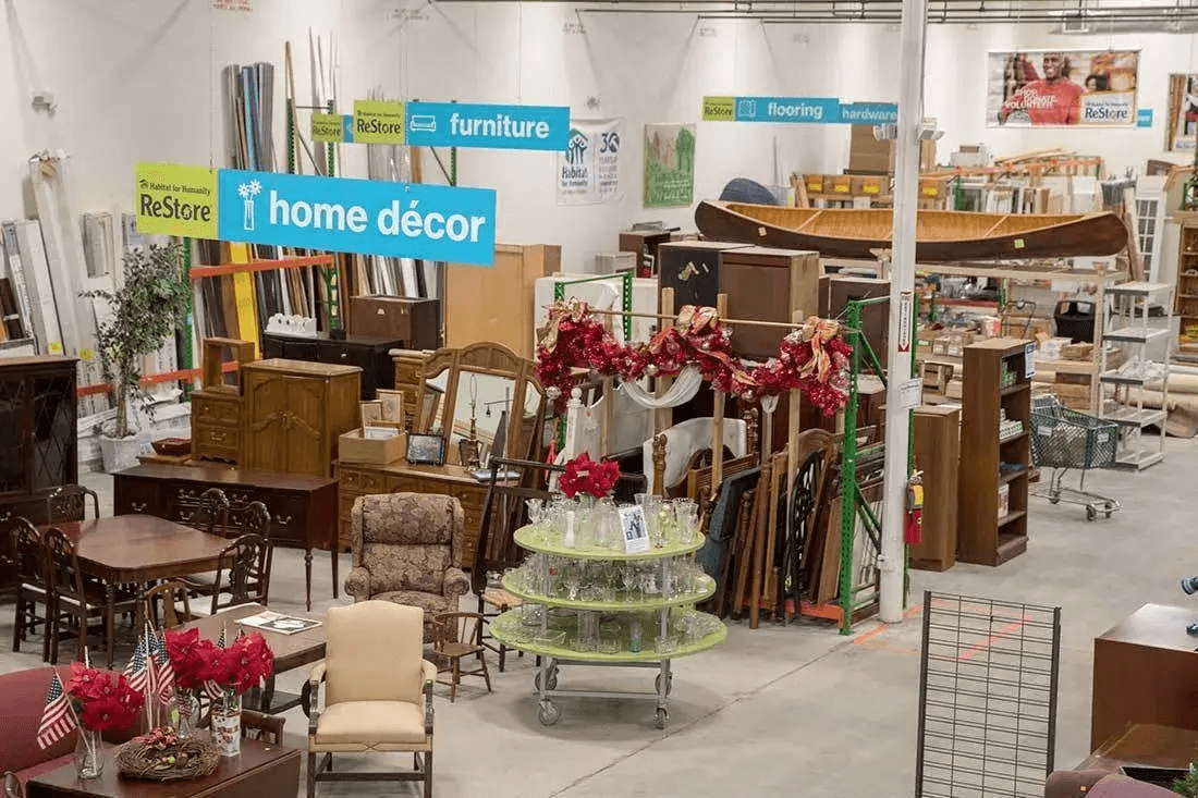 ReStores accept donations and sell a constantly changing inventory of diverse, high-quality merchandise to the public at a fraction of the retail price, while diverting reusable household items like used furniture and building materials from landfills.